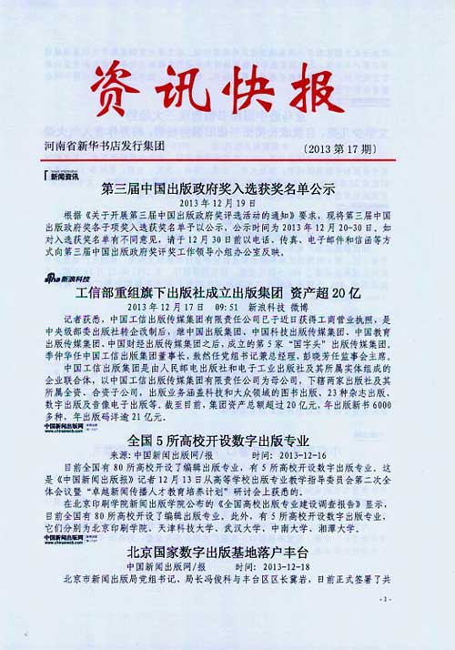 來源:河南省新華書店發(fā)行集團(tuán)有限公司  作者:河南省新華書店發(fā)行集團(tuán)有限公司  發(fā)布時間:2013/12/23 12:32:11  閱讀次數(shù):6294