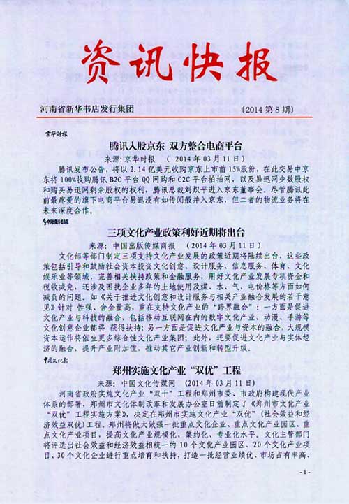 來源:河南省新華書店發(fā)行集團有限公司  作者:河南省新華書店發(fā)行集團有限公司  發(fā)布時間:2014/3/14 10:45:53  閱讀次數(shù):9577